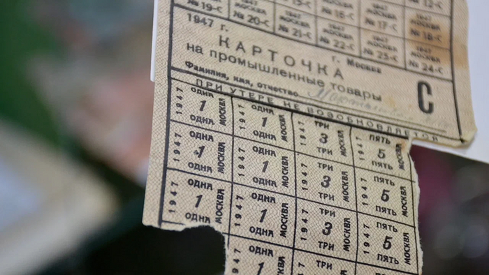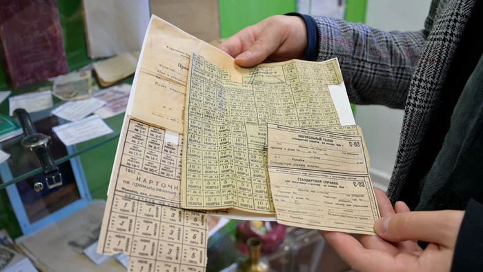 В музее также затронута и трагическая сторона нашей истории: в Советском Союзе существовала карточная система, которую ввели из-за дефицита товаров в годы войны и просуществовала до 1947 года. Потерять карточки в то время было самым страшным событием — восстановлению они не подлежали.