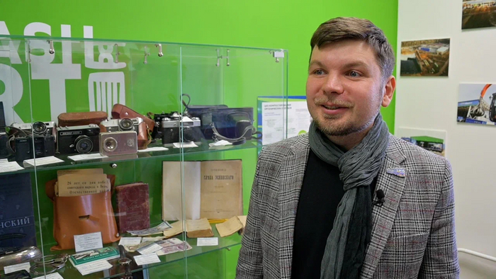 В музее большая коллекция фото, видео и аудиотехники советского периода. Магнитофоны, которые работали от батареек, и переносные колонки — мечта каждого молодого человека.