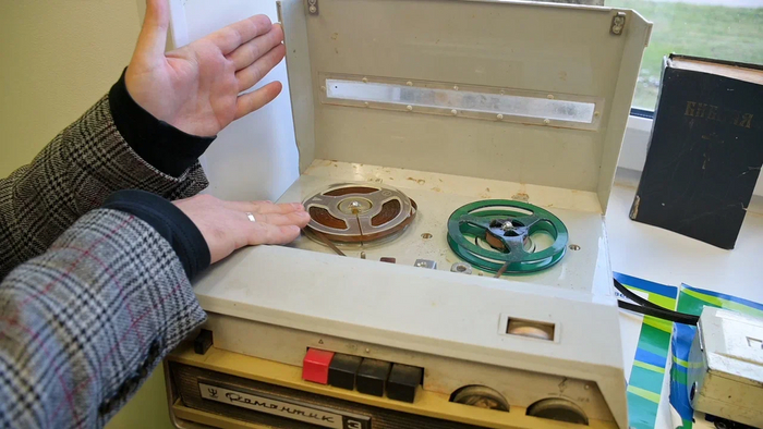 Катушечный магнитофон «Романтика» с бобинами пленки для записи и прослушивания. Подобные устройства подарили нам записи певцов тех лет, таких как Булат Окуджава и Владимир Высоцкий.