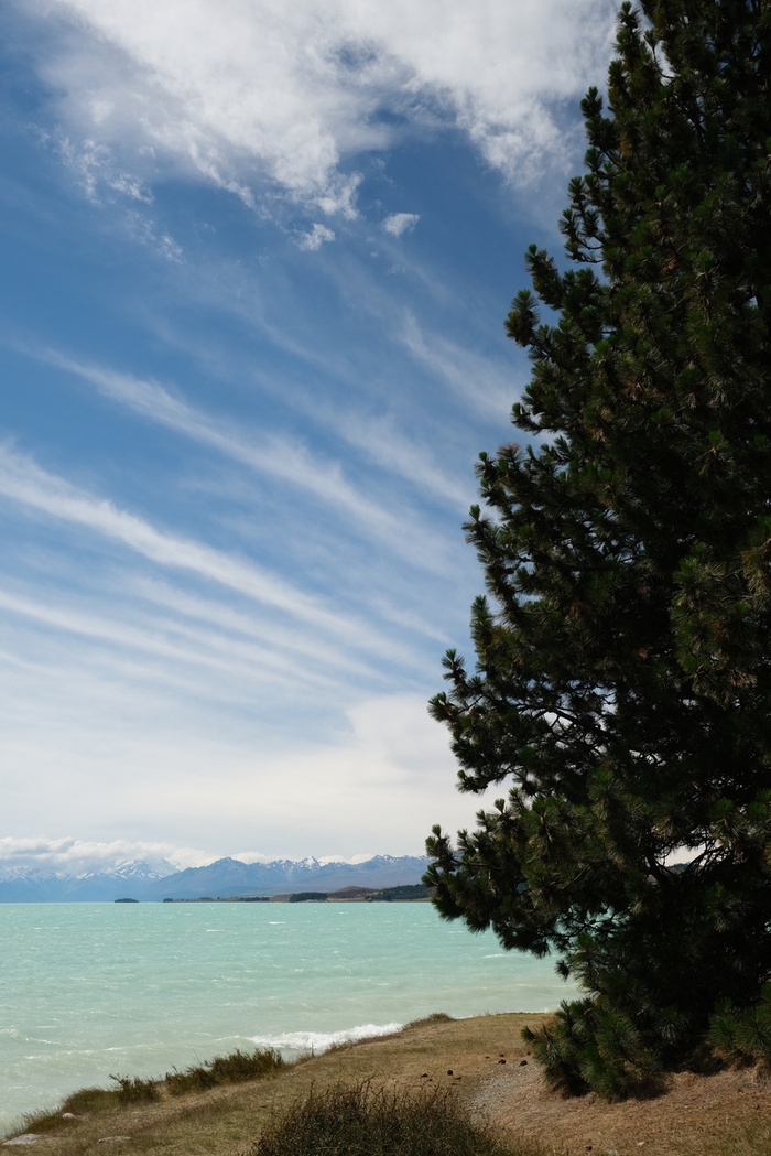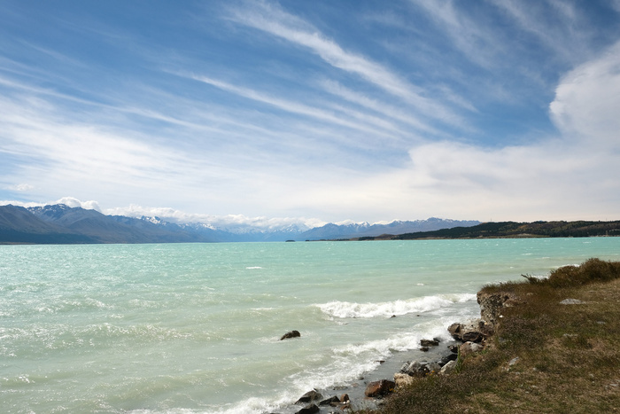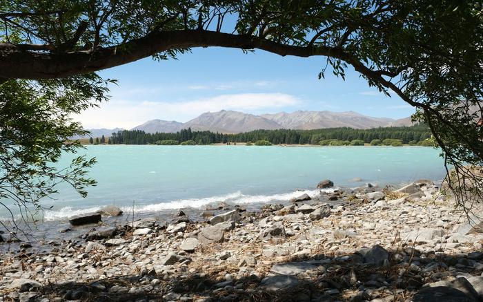 Одно озеро, Текапо, было бирюзового цвета, а за ним виднелись темно-синие горы, белыми шапками снега отделенные от лазоревых небес. Здесь, в отличие от Северного острова, нет ядовитых вулканических красок, все яркое и чистое.