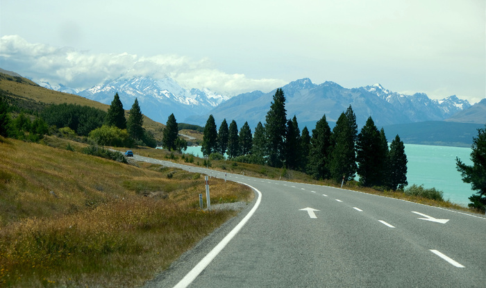 От памятника Куку мы стартовали в сторону Маунт-Кука, самой большой горы в Новой Зеландии. Вообще-то приехали бы мы раза в полтора быстрее, если бы не пейзажи: то и дело машина съезжала на обочину, и мы вылезали в восхищении. Новозеландцы в местах панорамных видов предусмотрительно организовали специальные парковки – смотри, фотографируй, запоминай. Можно было бесконечно вглядываться в многомерные пейзажи: желтые поля, ряды темно-зеленых сосен, опять поля, сосны, холмы, далекие леса, синеватые горы на горизонте. Прозрачные озера – тончайшее сочетание оттенков голубого, зеленого. И все пронизано каким-то особенным светом, словно он не извне падает на природу, а является ее душой, наполняющей все вокруг, будь то камень, куст или облако…