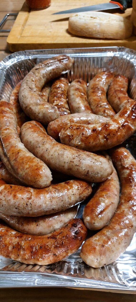 Делал я их при помощи обычной мясорубки и насадки (об этом подробно в будущих постах). К сожалению готового продукта с мангала от 2016 года не осталось :) Есть более свежее фото с рождества 2024 года.