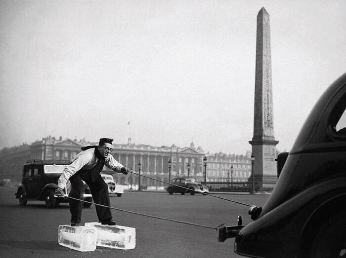 Скольжение на ледяных брусках, Париж, площадь Согласия, 1940 год.