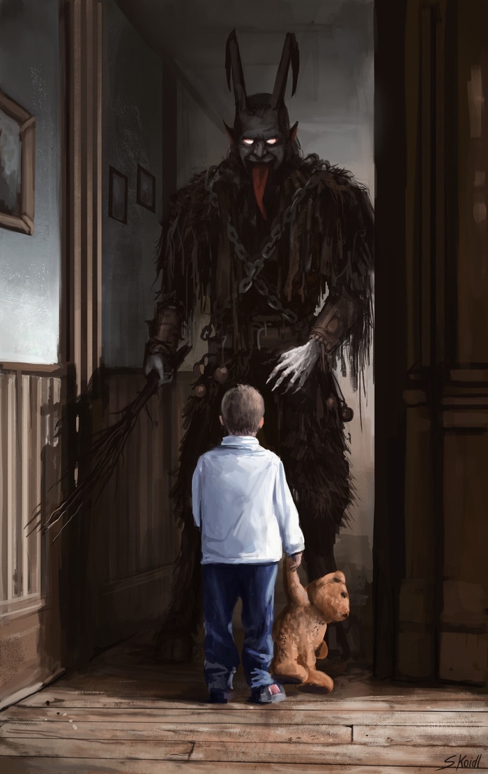 Лучшая рождественская постановка на тему ужасов! Особенно, когда вам надоели обычные жанры😈🎅История о демоне, второй ипостаси Святого Николая, который во время Рождества выискивает непослушных детей, чтобы наказать их - дать угля вместо подарков, избить розгами или утащить прямиком в Преисподнюю.
