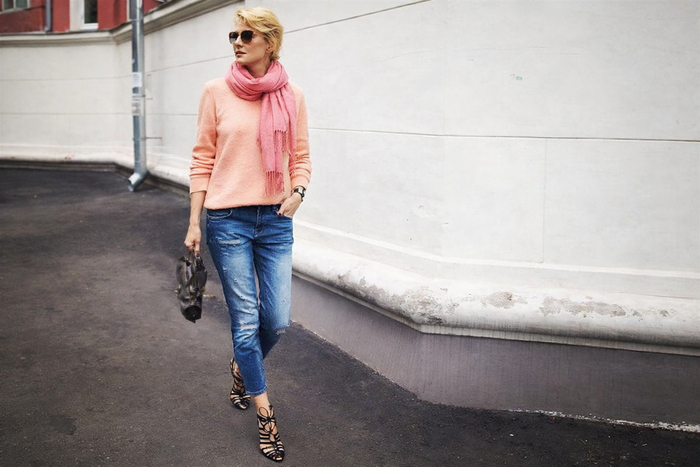 Пастельные оттенки творят волшебство у лица. Персиковый свитер подсвечивает кожу изнутри, розовый шарф дарит румянец, лавандовая блузка смягчает черты. Эти цвета не кричат о себе, но работают тонко и безошибочно.