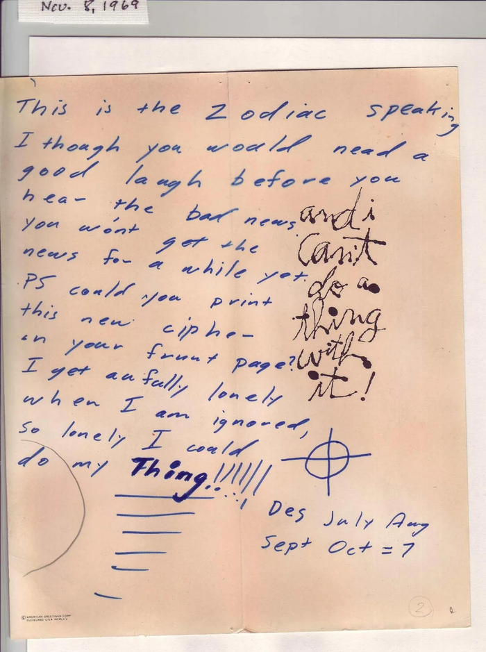 Отсканированные письма серийного убийцы Зодиака