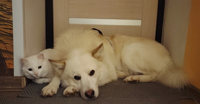 Однажды вечером, выходя из квартиры на прогулку с Петровичем, мы увидели, что из соседей приоткрытой двери выше огромный пушистый бело-рыжий кот. Петрович начал рваться к нему, чтобы поиграть. Кот увидел его, побежал по коридору, сделал сальто о противоположную стену коридора и побежал на нас. Остановился на полпути и встал в боевую позицию. Я быстро открыла дверь и пихнула Петровича обратно домой. Решила постучать в приоткрытую дверь и уведомить соседей о беглеце. Не успела я сделать и пары шагов к соседской двери, как вышел хозяин кота. Взял его на руки и с недоумением спросил у него, чего же он так напуган. А я вот ни разу не увидела страха у кота. Мне кажется, будь его воля, то он бы разобрался с Петровичем. Я объяснила соседу, что он так взволнован из-за моего Петровича. Хозяин кота всё понял, и они благополучно удалились, а я ещё долго вспоминала эпичное сальто кота о стену коридора.