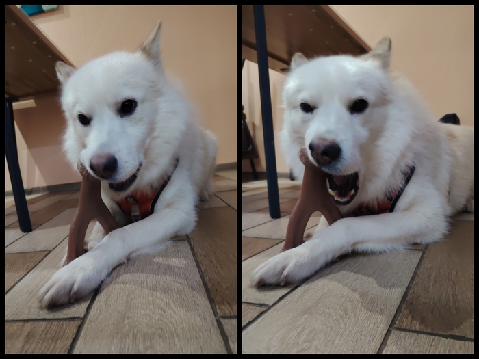 А ещё в прошлые выходные я водила Петровича на экспресс-линьку. Он сильно стал лезть, и домашнее вычесывание не помогало. Отдала его грумеру. Через три часа мне сказали, что можно забирать мою зефирку. Иду к салону и слышу через открытое окно жалобы Петровича на фен. Зашла внутрь и увидела, как он психует на то, что его сушат. Не успела заснять этот драматический момент. Петрович отыгрывал великолепно. Когда он увидел меня, то фен перестал для него существовать. Сразу стал счастлив и молил забрать его быстрее из этого адского места, где его мыли, вычесывали и сушили феном. Сейчас шерсти правда намного меньше, но дальше будет видно, не уверена, что это поможет.