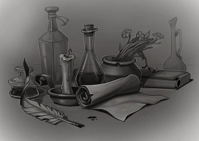 Ой, это ж натюрморт. Ну да, но из головы, немного модифицированный, и нарисованный в цифре.