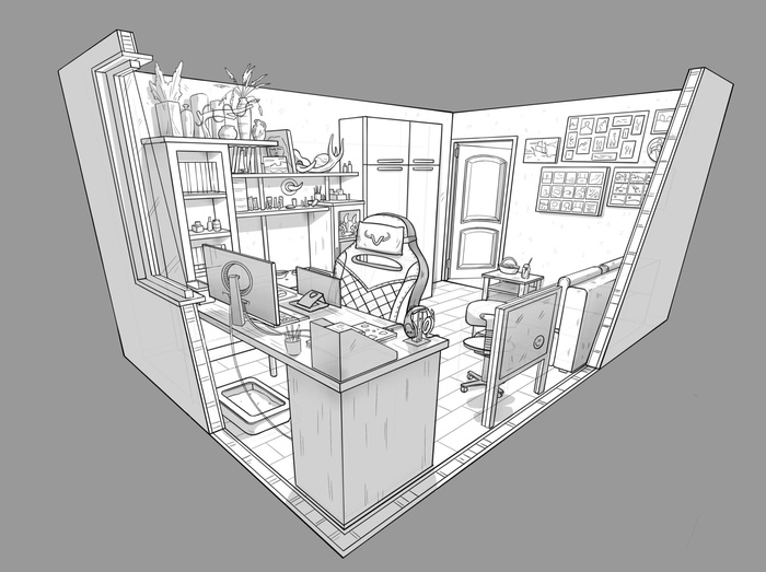 А примерно так выглядит моя комната. Набивала руку по перспективе и разметке