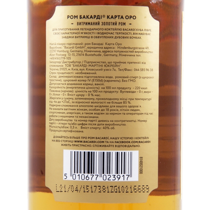 Для сравнения, состав рома Бакарди Оро (состав такой же и в наших краях, тут уже наблюдаем краситель)):