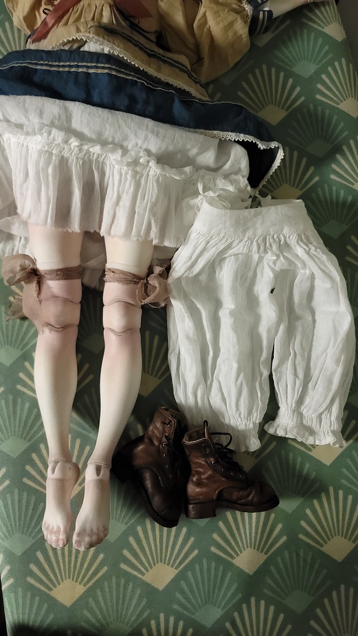 Однако, до того, как я покажу этих кукол на выставке, меня ждут ещё полтора месяца работы. Приступаю к изготовлению костюмов: достаю шелка, хлопковые батисты, бисер, пуговицы, нитки, кожу и ленты; снимаю мерки и делаю лекала; вырезаю, сшиваю и приклеиваю.