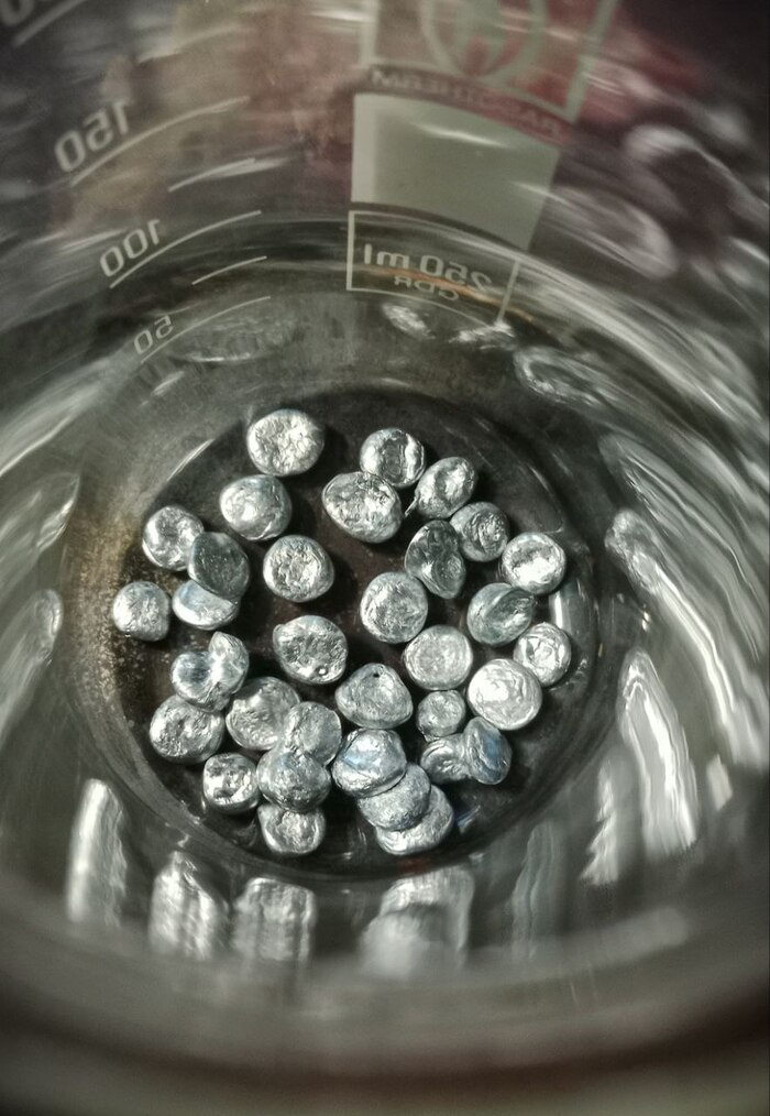 Собссно, сам цинк можно либо выковырять из старых батареек (не литиевых!), либо добыть уже в гранулах. Первым делом запирдячиваем его в соляную кислоту. Пока он там весело пузырится, идём на кухню и прокаливаем соду обыкновенную на плите. Так вот зачем она нужна..