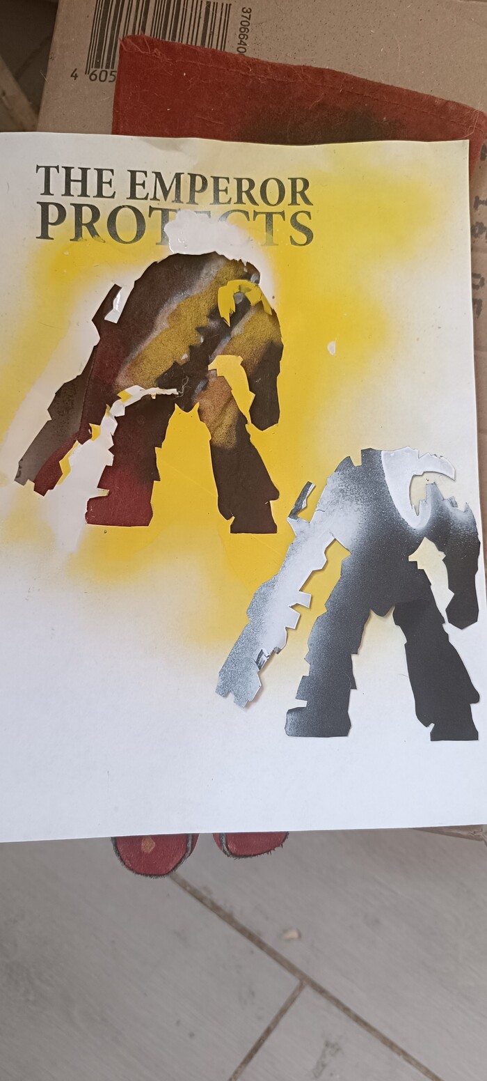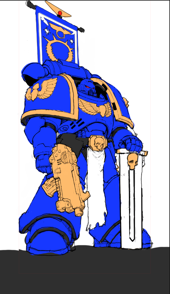 Выбор пал на ваху. Сначала сделал имперского рыцаря по слоям, но забраковал, потом космодеса, но тоже рисунок забраковал, затем долго решил не морочиться и нашел силуэт космодесантника.