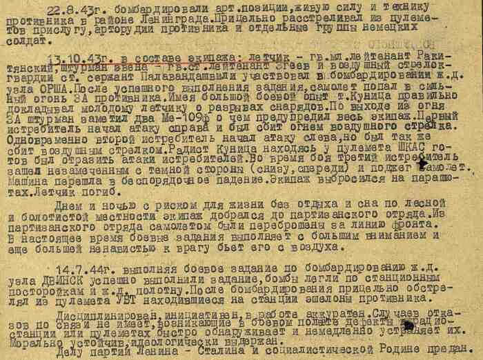 Группа лётчиков, бомбивших Берлин в ночь на 30 августа. На снимке слева направо (первый ряд): гвардии капитан С. Н. Даньшин, гвардии капитан Г. И. Несмашный, гвардии старший лейтенант С. А. Полежаев, гвардии капитан Н. Ф. Андреев, гвардии майор С. Н. Алейников, гвардии майор М. А. Брусницын, гвардии капитан М. В. Симонов, гвардии капитан Б. Б. Ширяев, гвардии капитан А. К. Рода, гвардии майор С. И. Куликов, гвардии майор М. А. Бойко, командир корабля Н. И. Степаненко. Во втором ряду: стрелки-радисты А. М. Голубой, П. И. Шелутько, В. Л. Куница, Н. Г. Петров, А. И. Васильев, А. Панфилов, В. А. Максимов, М. С. Альпер.