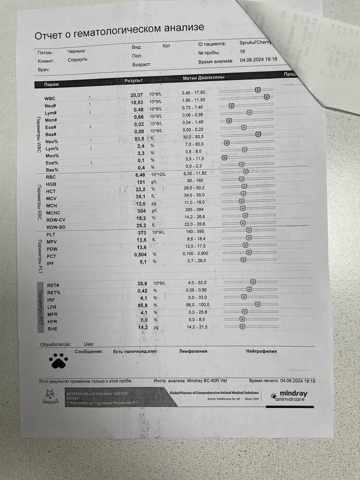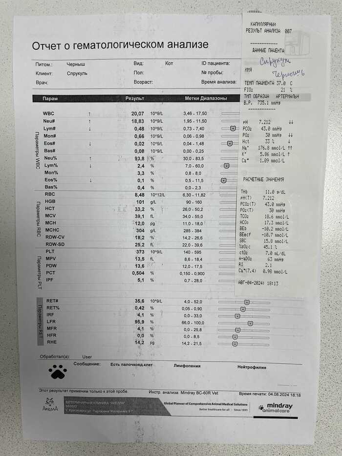 Кот стабилен. Лечение подобрано. Следующий контроль по крови -понедельник.
