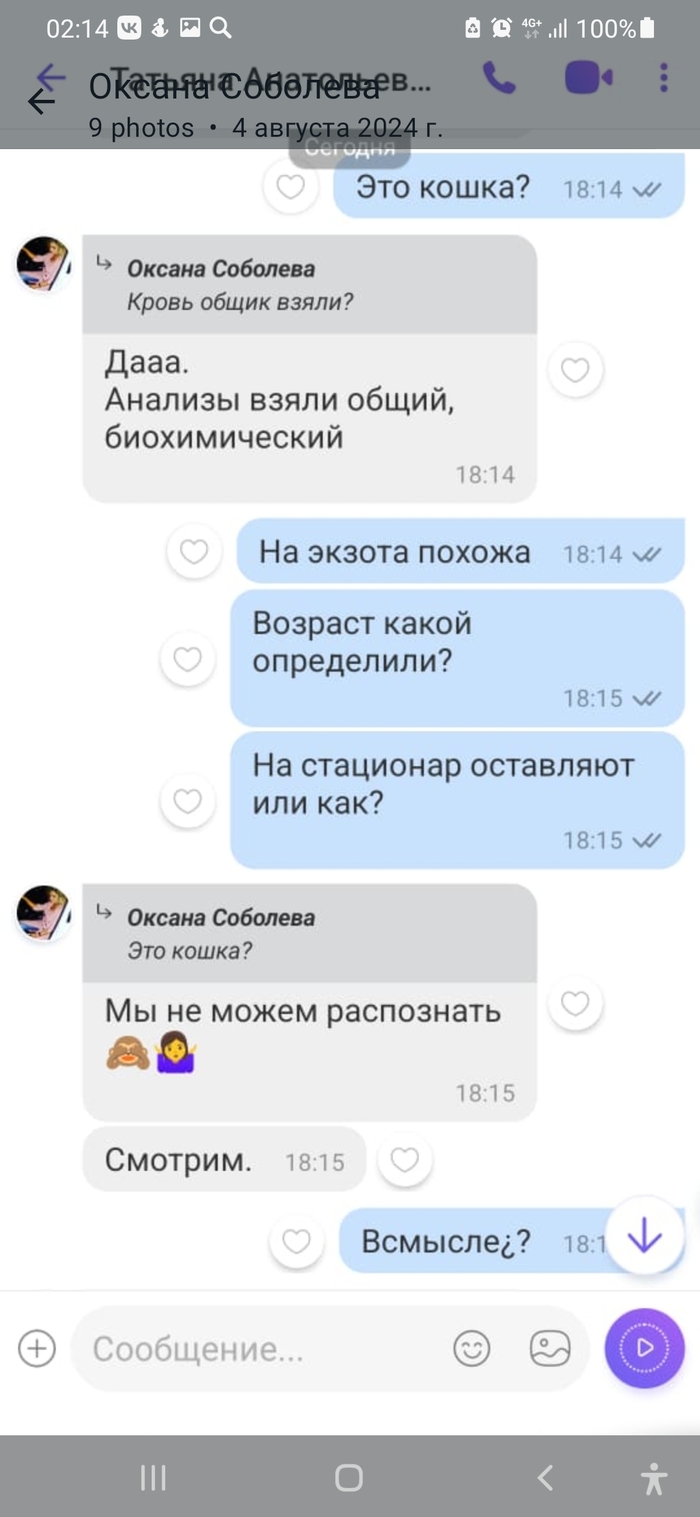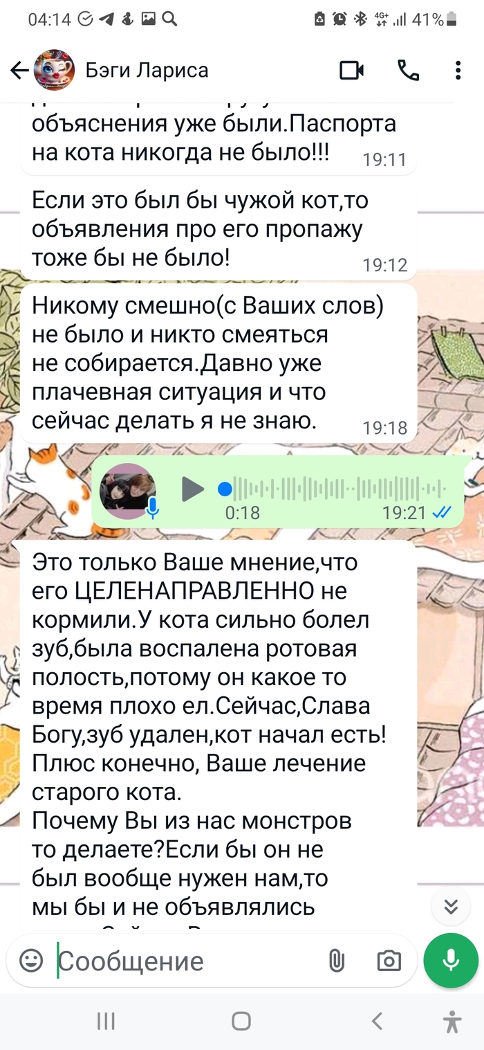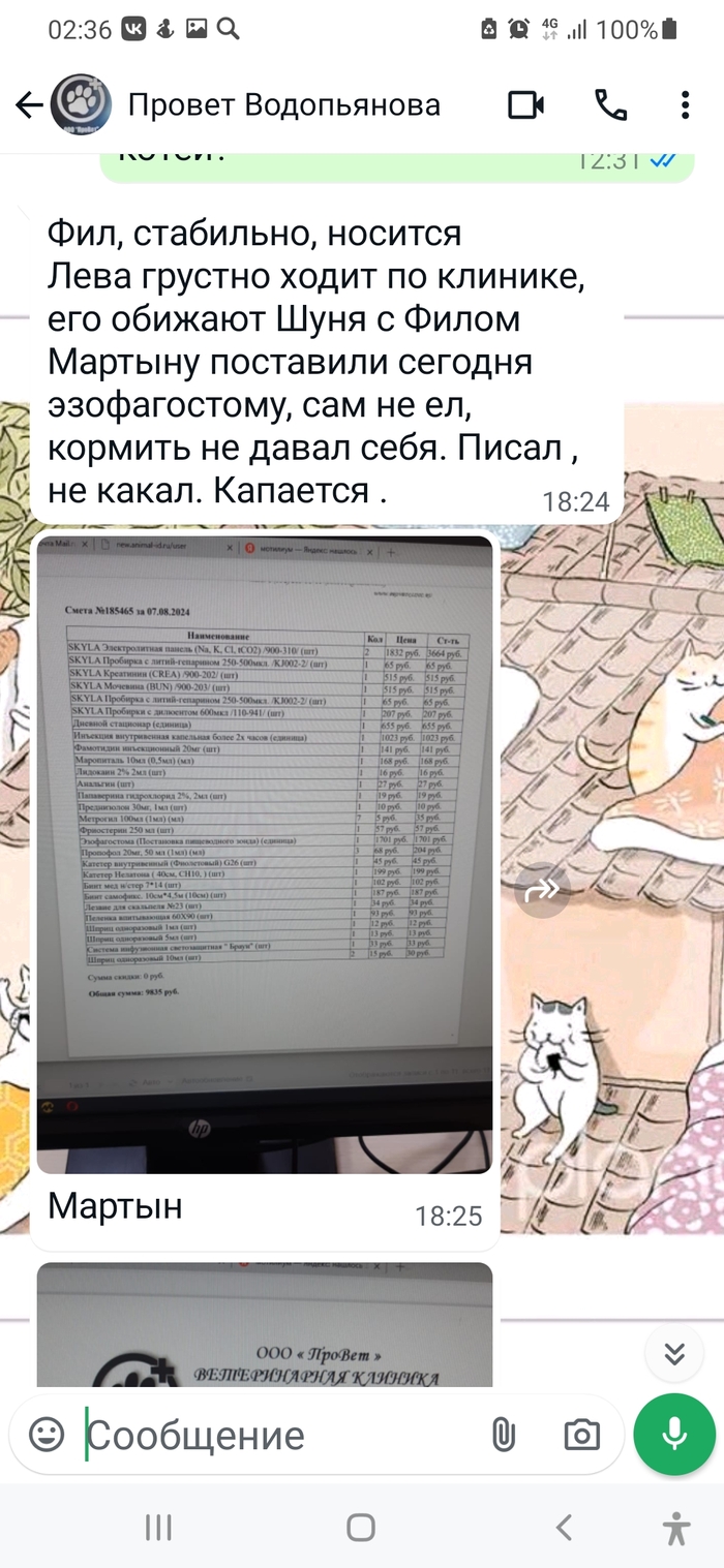 Татьяна, которая доставила Мартына в клинику и оплачивали его первые счета, позвонила...и ничего не поняла из речи хозяйки кота