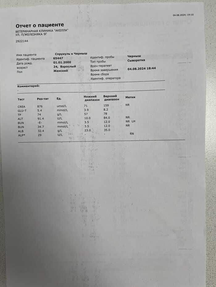 С котом остался ночевать сотрудник. А утром главврач звонила и сказала-....что кота капают и будут смотреть анализы креатинин и мочевина таких значений не бывают ...и если не будет изменений-то кота нужно отпустить..