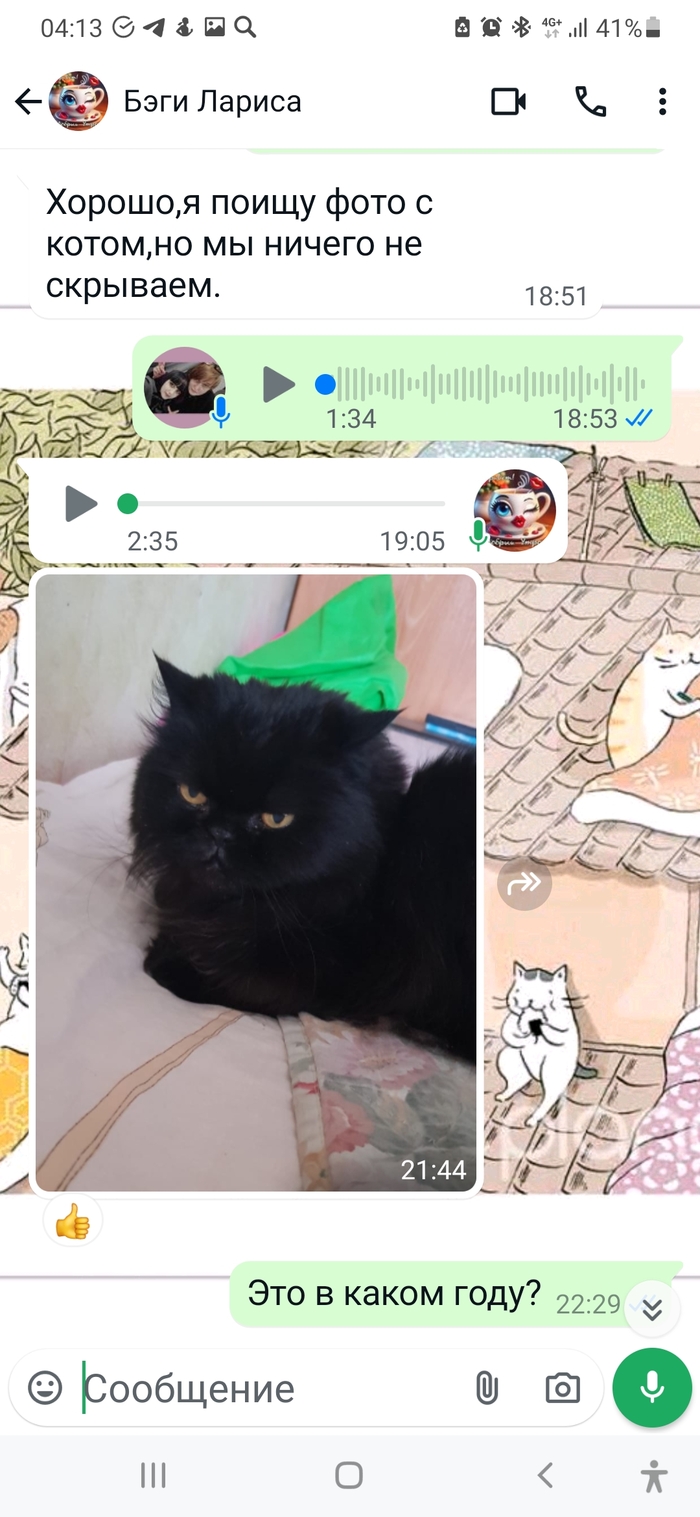 кот живёт с дочерью дамы пенсионного возраста, которая находится с июня этого года в другом городе...