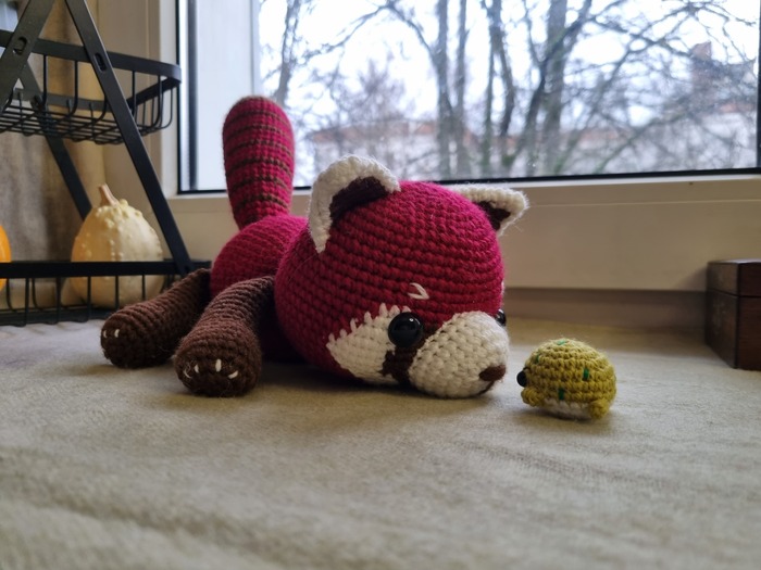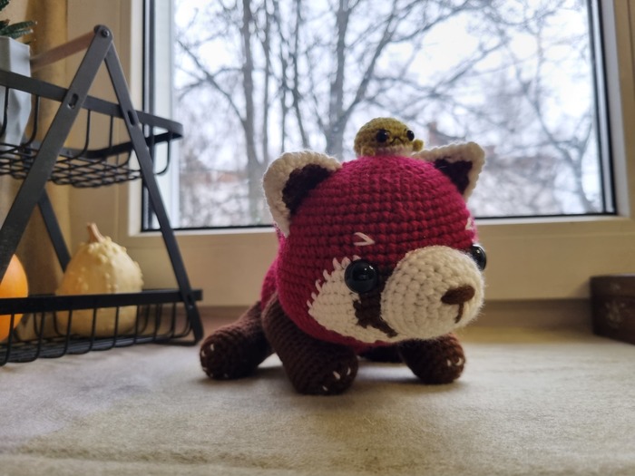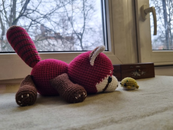 Первую панду я решила связать красной, этот оттенок просто завоевал мое сердце ❤
