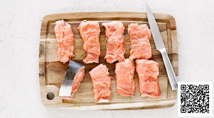 1. Подготовьте горбушу. Вымойте ее проточной водой и почистите. Обсушите бумажными полотенцами, затем нарежьте горбушу порционными кусками толщиной около 1,5 см.