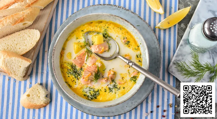 Этот рыбный суп со сливками очень напоминает финский лохикейто, рецепт которого почти идентичен нашему. Получается очень нежное, вкусное, согревающее первое блюдо. Сначала в кастрюле варится рыбный бульон, затем в него кладутся овощи (обжаренный на масле лук с морковью и нарезанный картофель), а в самом конце вливаются сливки, придающие супу особую изысканность.