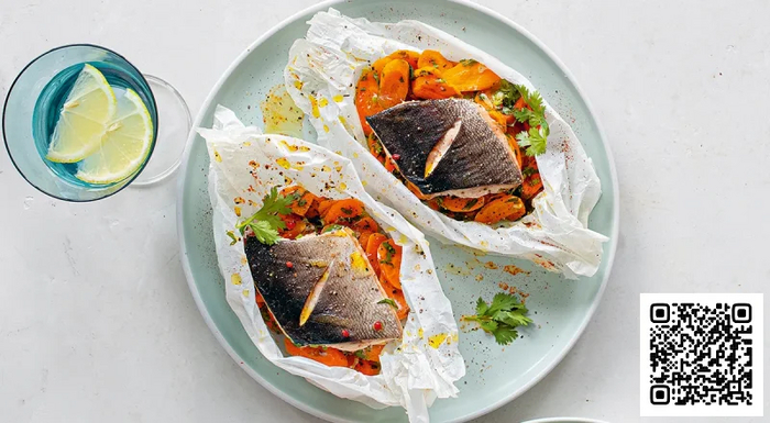 Филе горбуши запекается и подается порционно в «конвертах» из пергамента. Подушка овощей и трав пропитывается рыбными соками и позволяет куску не пересохнуть. Внутрь каждого конверта можно добавить 1 ст. л. белого вина и ваши любимые сухие травы — это сделает аромат блюда еще более интересным и богатым.