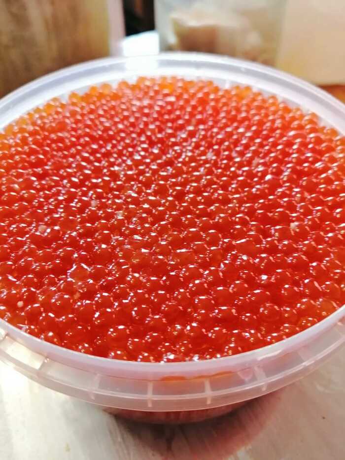 Мне больше понравилась икра кижуча. Очень яркий и насыщенный вкус. После нее икра кеты показалась пресной.