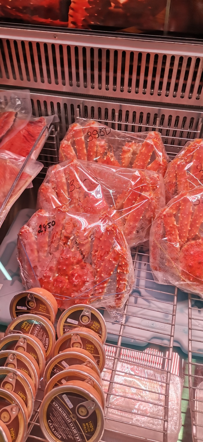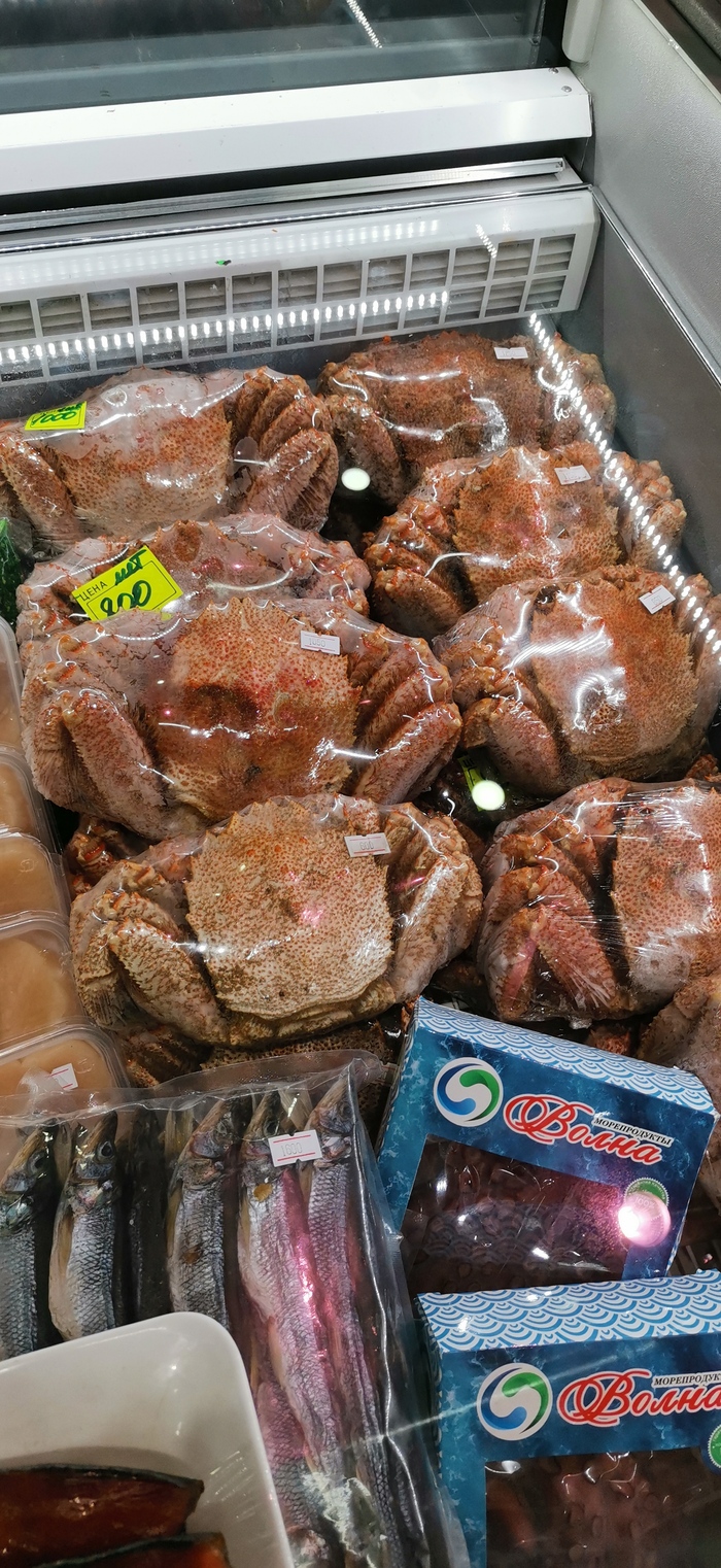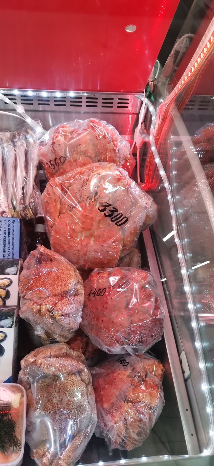 Колючий краб- 1200-1500р. "Норм, но большего не бери, будет пустой" - комментарий продавщицы.