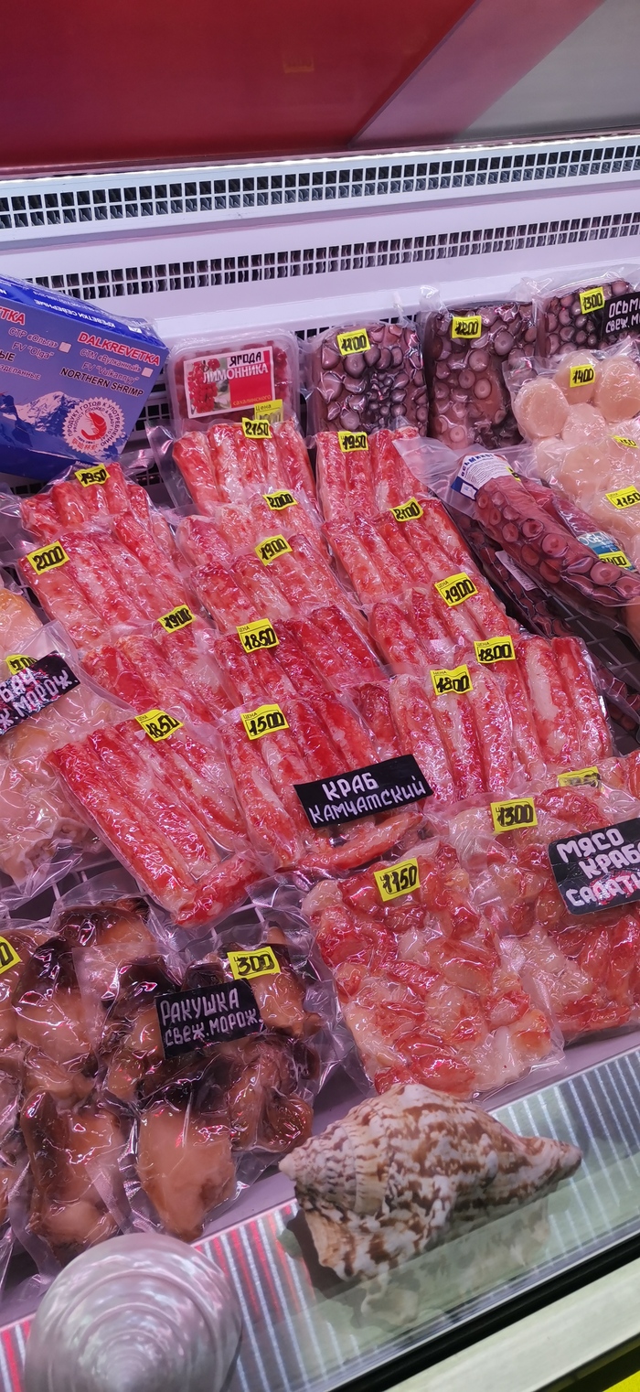 Камчатский краб - 3000-4500р. Опять таки не советуют брать больших.