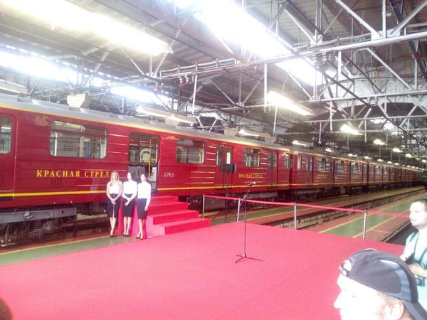В столичной подземке вот уже почти десятилетие бежит по рельсам именной поезд, стилизованный внешне под «Красную стрелу». Запущен он был к 75-летнему юбилею первого советского фирменного состава. Благодаря обилию иллюстративной и текстовой информации, размещенной в вагонах этого необычного метрополитеновского состава, любознательные пассажиры могут познакомиться с увлекательной историей «Красной стрелы».