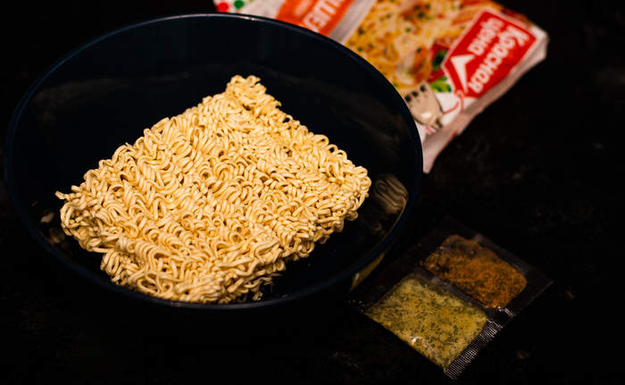 (возможно это и есть секретный лайфхак с микроволновкой о котором я спрашивал в позапрошлом исследовании). Так или иначе, лапша полностью сварилась, не разварилась, получилась мягкой, но плотной.
