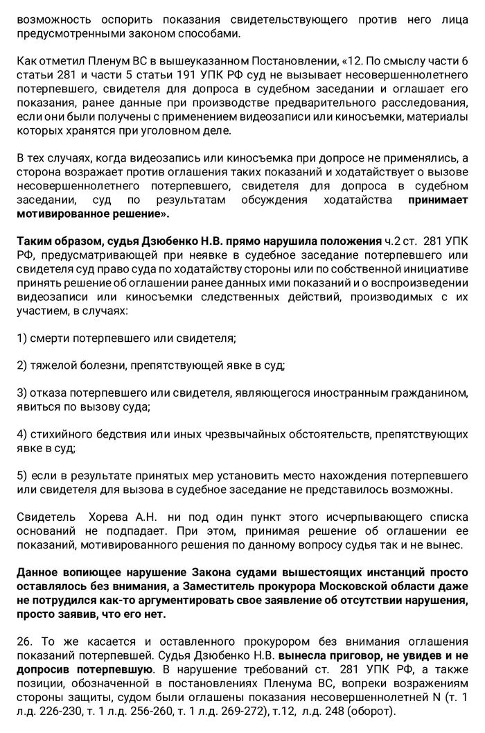 13. Судебная коллегия сознательно проигнорировала тот очевидный факт, что непринятие мотивированных решений по заявленным ходатайствам в ходе рассмотрения уголовного дела в суде первой инстанции имело системный характер. Так, в ходе судебного заседания стороной защиты Москалева Н.А. в виду неполноты предварительного и судебного следствия, также заявлялись ходатайства о допросе дополнительных свидетелей (т.12, л.д.137-139). Мотивированного решения по данному ходатайству вновь принято не было, что повлекло нарушение ст. 271 и ч. 4 ст. 7 и ст. 122 УПК РФ).