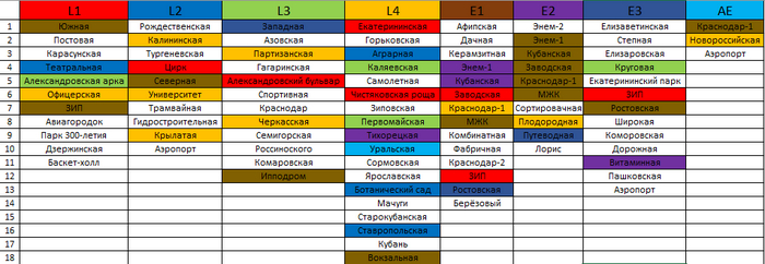 Сделал еще сводную экселевскую таблицу, где указаны пересадочные станции: