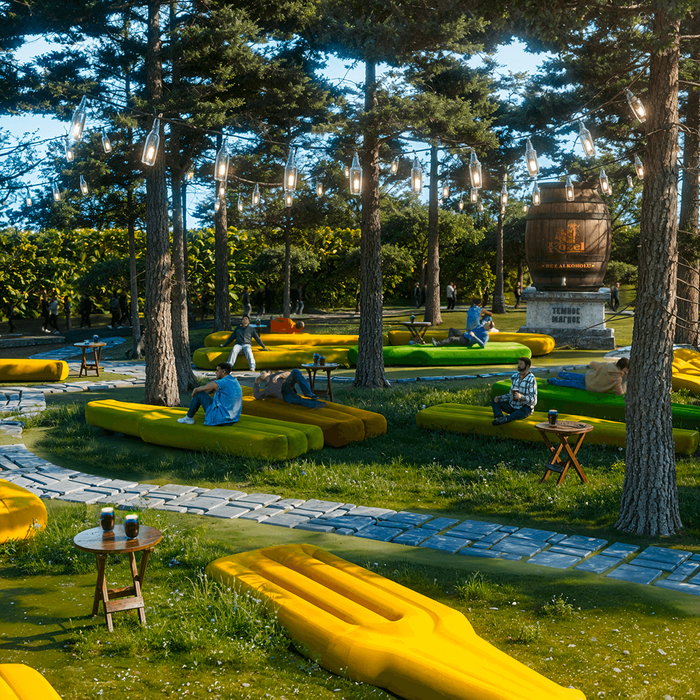 В «Амфитеатре воды» устроены многоуровневые террасы — они одновременно служат и зоной отдыха, и некой «смотровой площадкой», с которой удобно наблюдать за происходящим.
