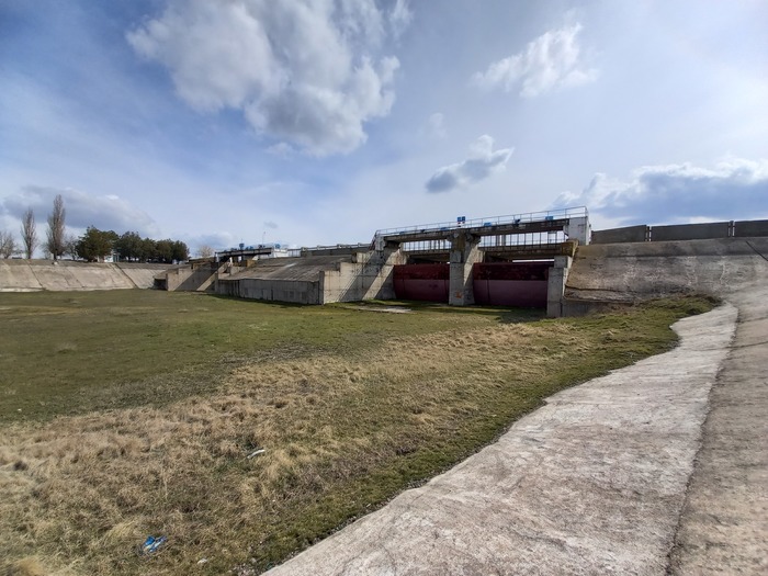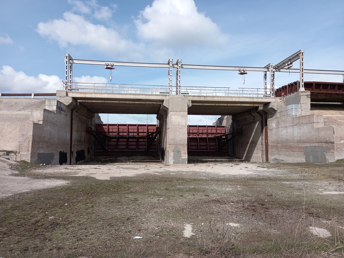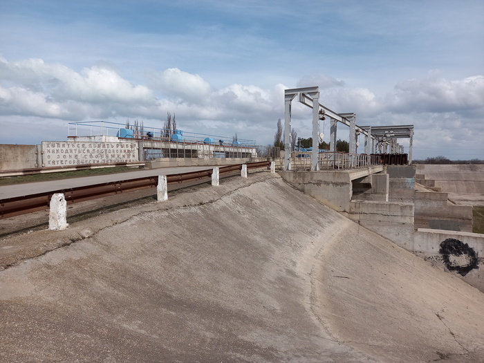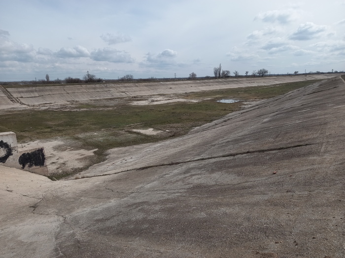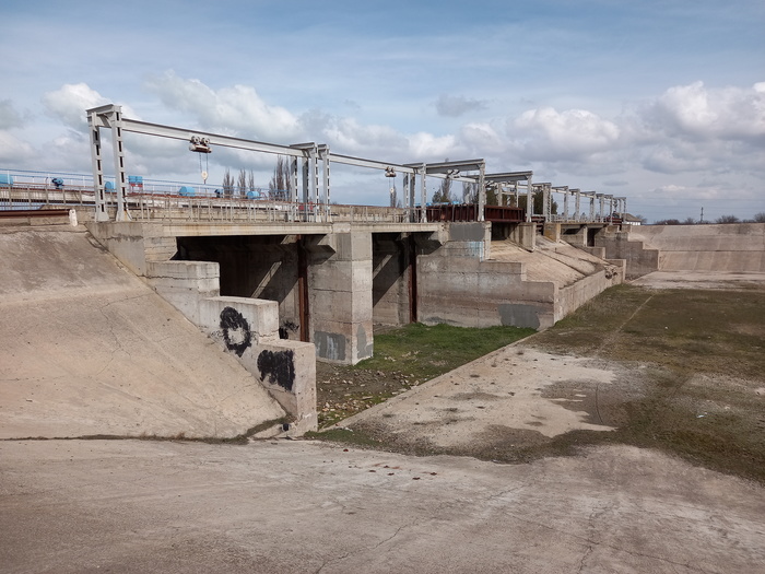 Шлюзовой мост Северо-Крымского канала в районе города Красноперекопска. Увы унылое зрелище. Когда то здесь бушевали воды Днепра. В хорошие времена, когда канал регулярно чистили глубина под мостом составляла 13 метров, далее по течению метров через 500 примерно 9 метров. По последним обещаниям местных властей, сюда планируют нагнать воду из под Джанкоя, но когда это произойдет, увы неизвестно.