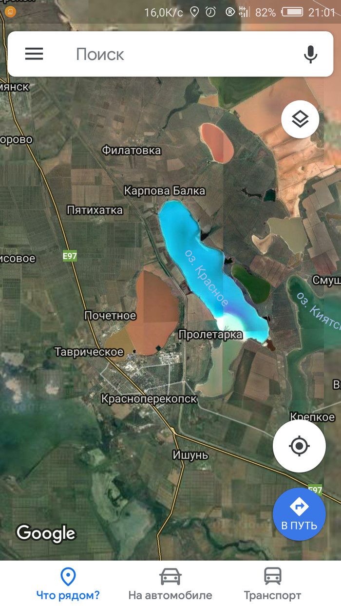 Ну и, собственно, пруф: даже на снимках со спутника озеро имеет насыщенный голубой цвет, желающие могут проверить на Google Maps.