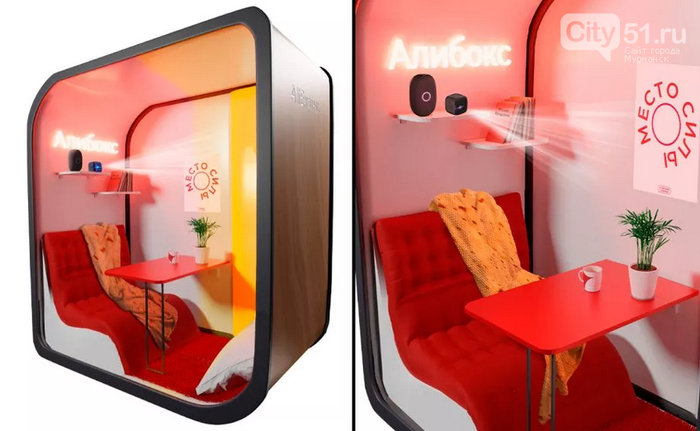 Компания тогда создала всего три таких капсулы. «Алибокс» создан из звукоизоляционных панелей и оснащён LED-освещением с датчиком присутствия, розетками, бесшумной вентиляцией, складным столом и мягким сиденьем. Стоимость такой кабины оценивали в миллион рублей.