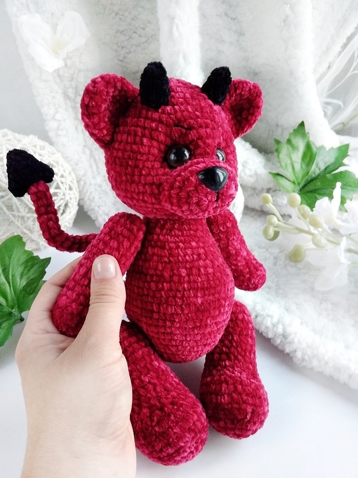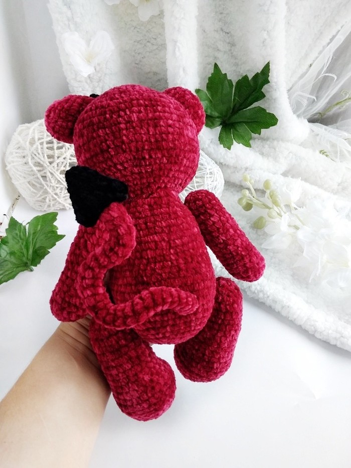 Захотелось мне связать мишку, но чтобы он не был банальным.. Пряжа кроваво-алого цвета вдохновила на создание вот такого милого персонажа
