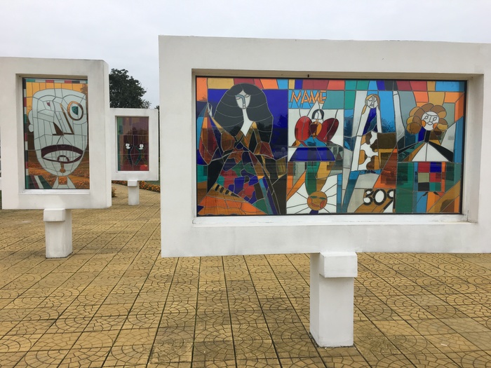 Портреты необычные. Художник Виталий Одинцов сделал их с помощью листов сусального золота, наложенного на оргстекло, это его авторский стиль. Одинцов родом из Жлобина, но ещё в детстве переехал в Италию, где получил художественное образование. Родину, как видим, он не забывает и регулярно отправляет сюда свои картины. Несколько лет назад здесь во дворце проходила выставка его работ, где в таком же стиле, например, были выполнены портреты Труса, Балбеса и Бывалого.