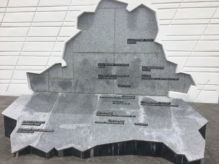 На обратной стороне символической классной доски изображена карта Белоруссии, где отмечены все те концлагеря или места содержания, среди заключённых которых значительное место занимали дети. Иногда по ошибке утверждают, что всё это донорские детские концлагеря.
