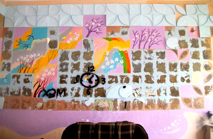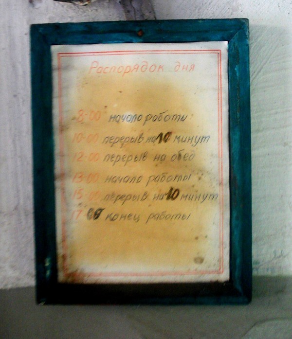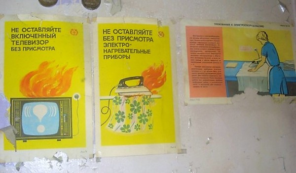 Это на полу. А на стенах висели плакаты советских времён, инструкции, памятки и др. Ностальгия....