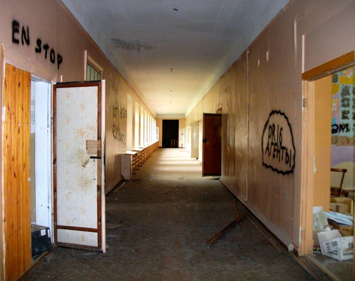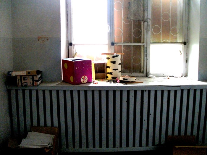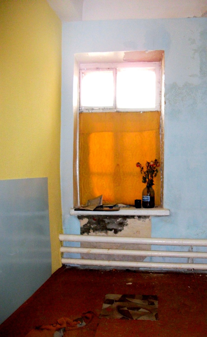 В этом здании в советское время и располагалась швейная фабрика. В помещение мы проникли через окно, расположенное рядом со вторым подъездом.