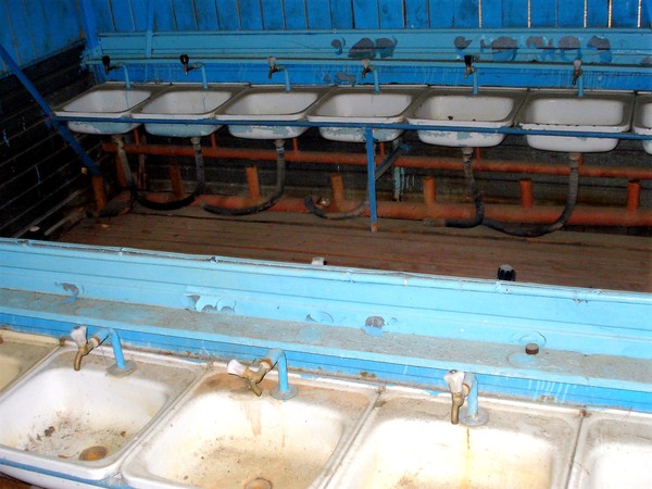 Но это первый этаж. Здесь были раздевалки для работников и административные помещения - кабинет директора, завхоза, касса, бухгалтерия и др.