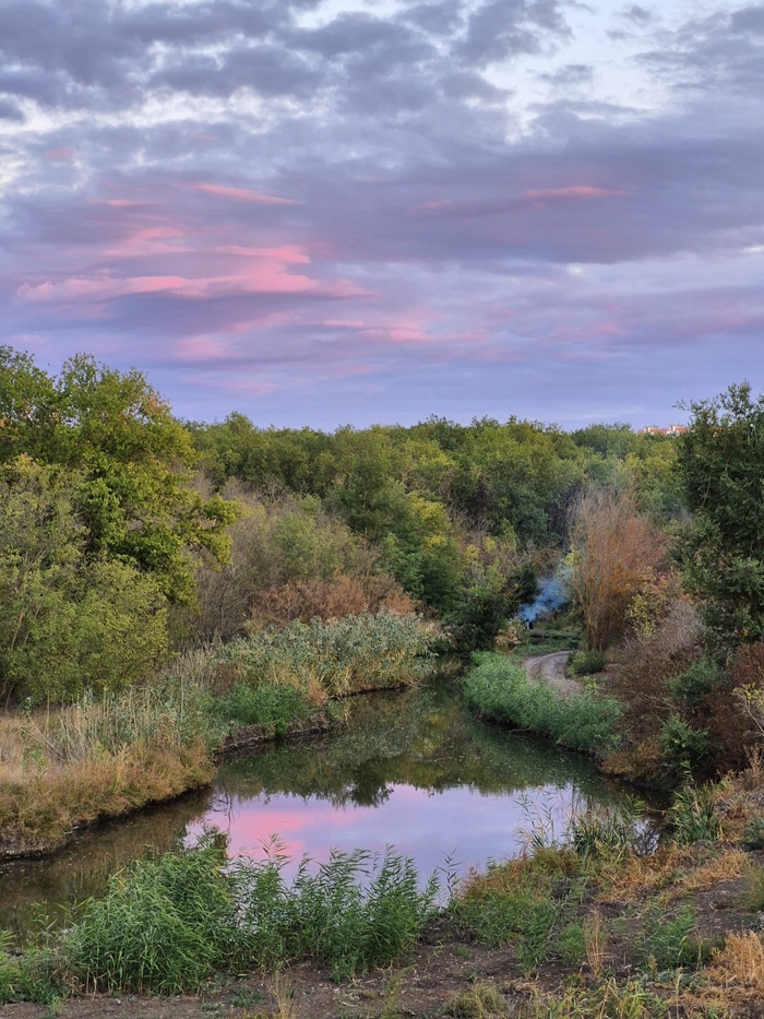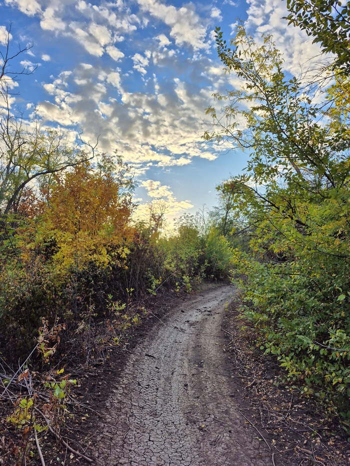 🍂 До этого последний раз я был 17 февраля. В этот раз мы прошли дальше, чем в прошлый раз. Отличия появились спустя 7,5 месяцев: раньше там был узкий ручей, а теперь его расширили; в некоторых местах горелая трава.