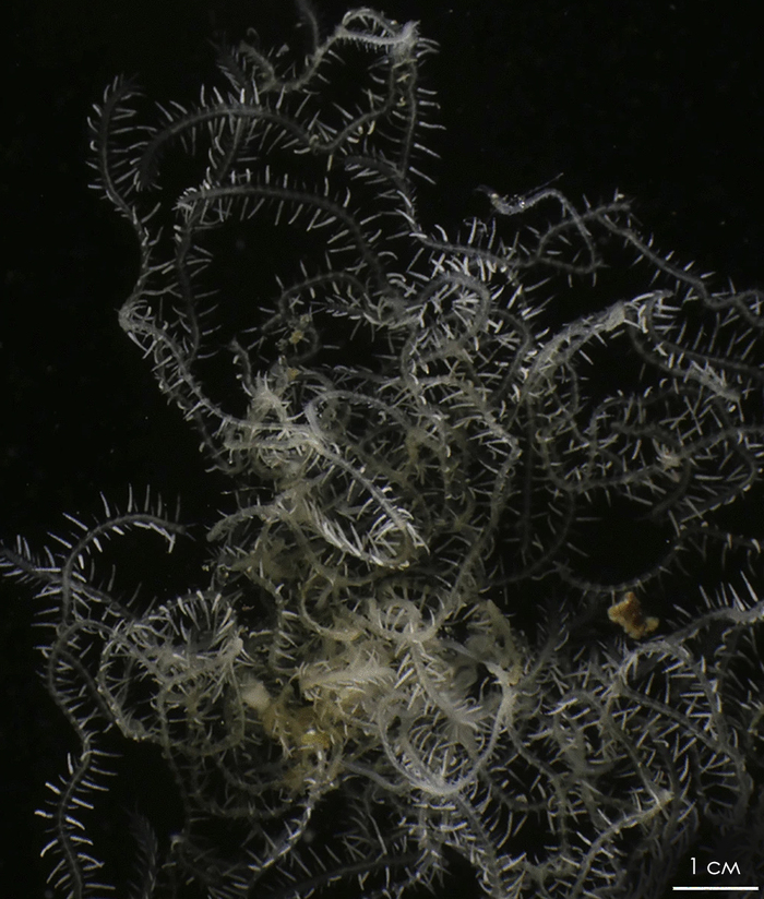 Поверхность тела губки, из которой торчат хвосты червя-многопопа