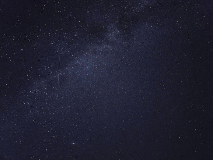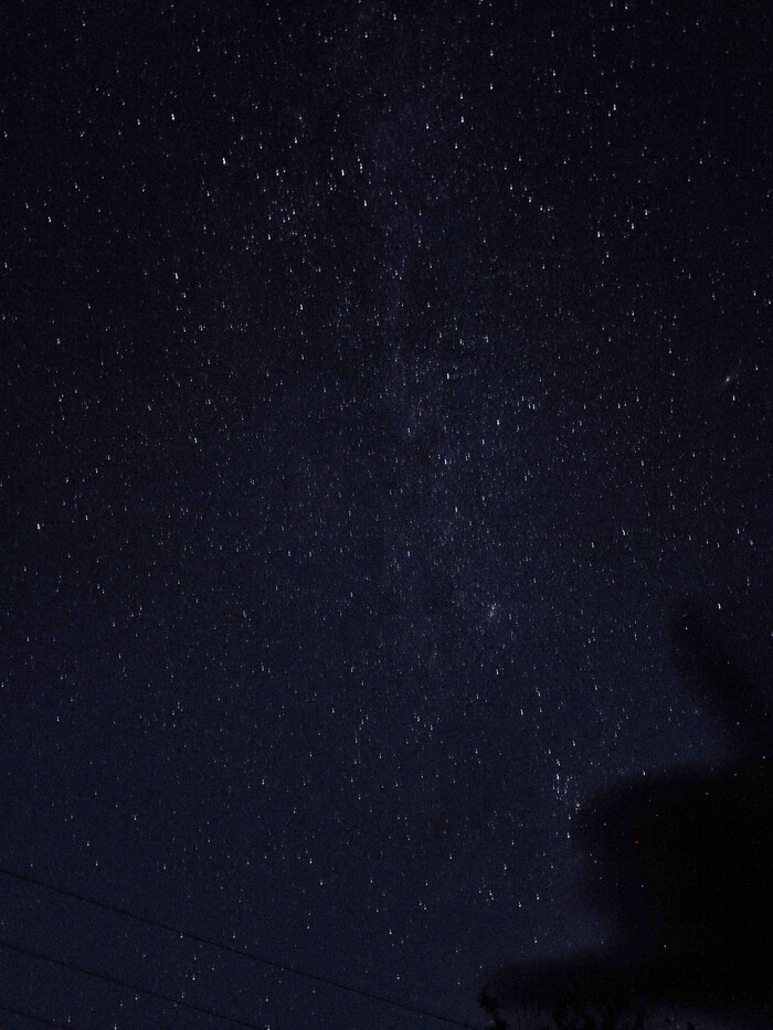 Расправившись с едой отправился полежать в гамаке. С часу до 2 часов ночи пофотографировал ночное небо. Взял табурет, литр коктейля (грейпфрутовый сок и домашнее вино пятилетней выдержки 1 к 1), штатив, телефон. И пока телефон делал фото я смотрел вокруг и выражал восторг в нецензурной форме. Как же это красиво. Нет слов... И как хорошо, что у меня нет денег, что бы ввязываться во всё это дерьмо. Жаль, что на телефоне всё так офигеть-а на компе уже не то. Да и пофиг. Я и так всё запомнил. Даже получилось поймать метеор в кадр. Эх. В Щёлково такого не увидишь, спасибо Москве. Единственное, то мешало-провода. Я даже отошёл от дачи метров на сто-не помогло. По уму надо было выйти подальше. Но комендантский час... Понятно, что за городом за этим особо не следят, но рисковать не охота.