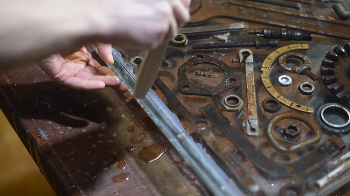 С прошлого заказа остался ПУ лак (200грамм) и он подходит по заданному заказчиком блеску в 30%. Материал очень прочный, тиксотропный, с средним сухим остатком. Его лучше не наносить на белые эмали и светлую древесину, т.к. он даёт небольшую желтизну, плюс со временем ещё более желтеет. В данном случае это не играет роли)