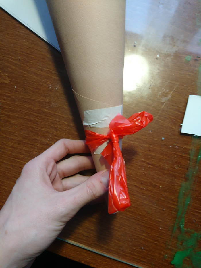 Завязываем красивый бантик из пакета.