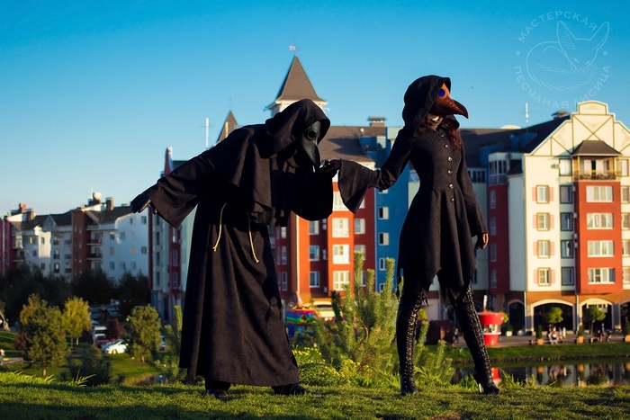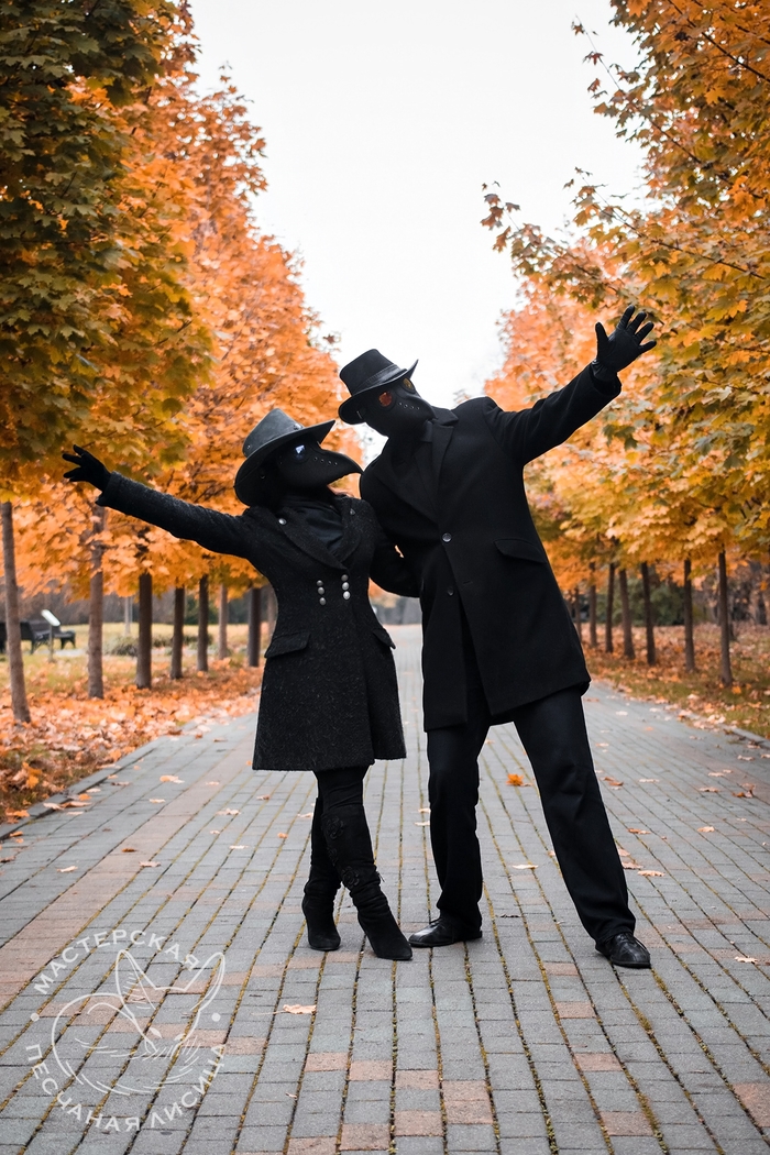 Маски чумных докторов на фото - изготовлены мною.